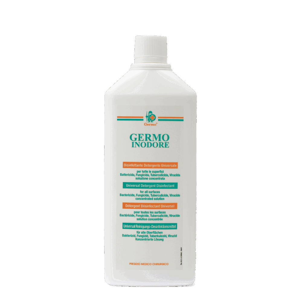 The special formula of GERMO INODORE characterized by the synergistic action of the Quaternary Ammonium Salt and Ortophenylphenol, is active against Gram positive and negative bacteria, also Listeria, Mycobacterium tuberculosis (TBC) and viruses (HIV, HBV, HCV).